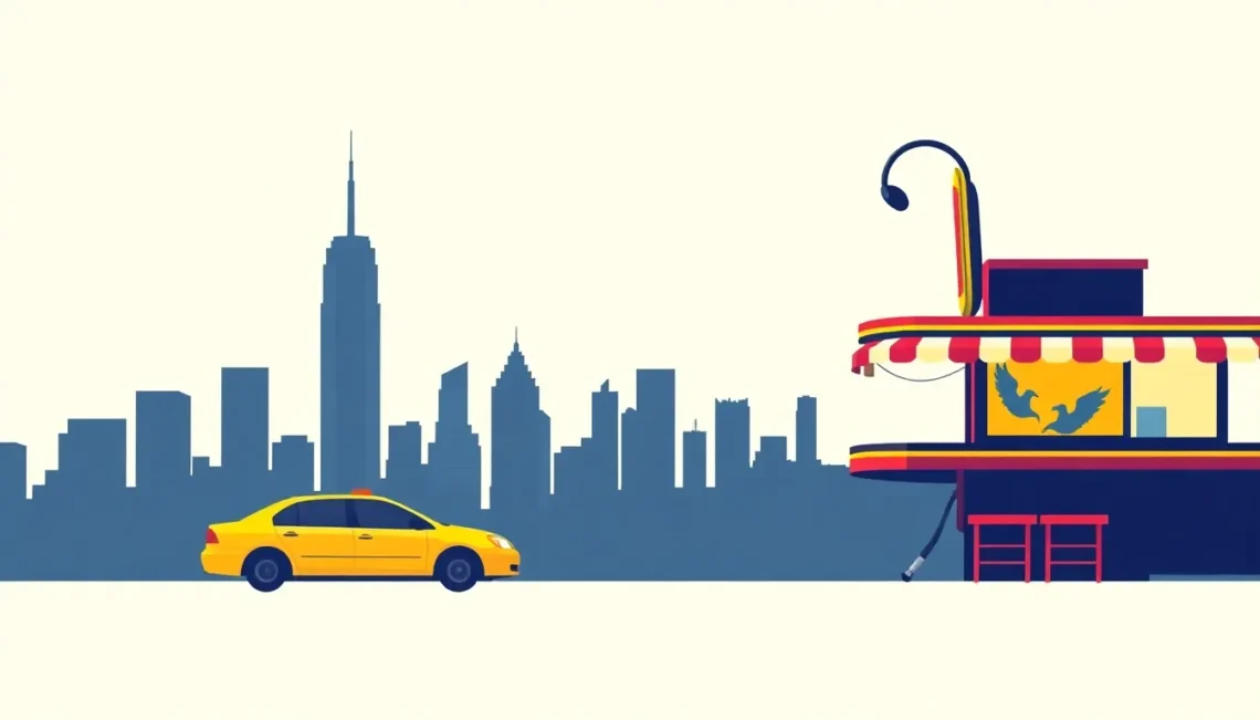뉴욕의 활기찬 거리에서 식사를 즐기는 사람들